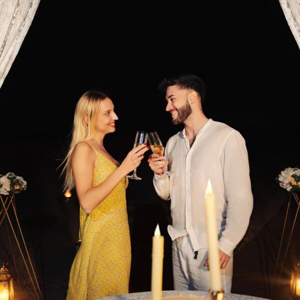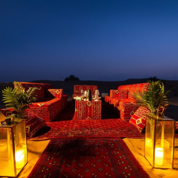 As dusk settles, unwind in an authentic Bedouin-inspired setting. Relish a delectable BBQ dinner featuring Arabian and international dishes while the campfire’s glow enhances the desert ambiance. Whether you seek adventure, relaxation, or a romantic desert escape, this bespoke evening delivers a perfect balance of excitement and serenity, all guided by your dedicated safari host.