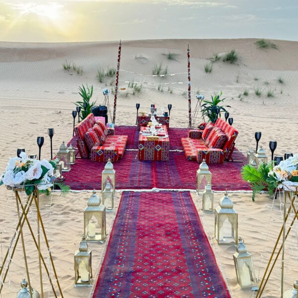 Step into the heart of the Arabian Desert with our exclusive Private Bespoke Desert Safari & Dinner, designed for travelers who seek both thrill and tranquility. Begin your journey with a private 4×4 pick-up that whisks you away from Dubai’s city lights into the vast golden dunes. Experience adrenaline-pumping dune bashing, serene camel rides, exhilarating dune buggy adventures, and sandboarding—all set against the timeless beauty of the desert. Conclude your evening with a sumptuous BBQ dinner and relax by the warmth of a bonfire under the starlit desert sky.