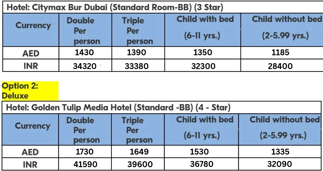 - Guest would need to pay tourism dirhams locally at the hotels